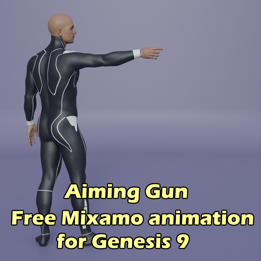 Aiming Gun. Free Mixamo animation for Daz Studio's Genesis 9. The product contains aniblock and pose preset.